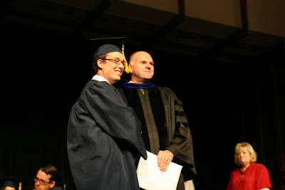 1. The commencement program 2. Waiting for Landon to walk in 3. Can you see him? Facing the camera, top row in the sea of blue 4. Thumbs up, it's over! 5. Walking in to convocation 6. Receiving his diploma from his mentor, employer, and the Department Chair, Dr. Scott Ritter 7. Uncle Rico finally graduated! 8. Landon and Kylie 9. The department after-party 10. Tradition: floating balloons up the pendulum shaft in the ESC 11. ESC lobby, under the department sign 12. The Burgeners minus Miles 13. Posing by the Y 14. Annoyed at the volume of pictures he has already posed for 15. Home away from home 16. So proud! 17-18. Party at our house! 19. His hard-earned gift: a Garmin GPS 60CSx, a necessary tool of the trade.